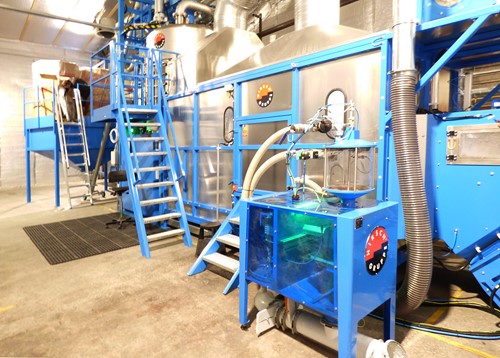 Til produktion af vores isoleringsmaterialer har vi investeret i en ny præ-ekspander, Hirsch PREEX 9000. Præ-ekspanderen kører en batch ad gangen og tager automatisk en prøve af hver batch. Hver prøve vejes og justeres i overensstemmelse hermed. Denne automatiske tæthedsregulering sikrer en præcis densitet af alle batcher hele vejen igennem – og sikrer 100% ensartet kvalitet.